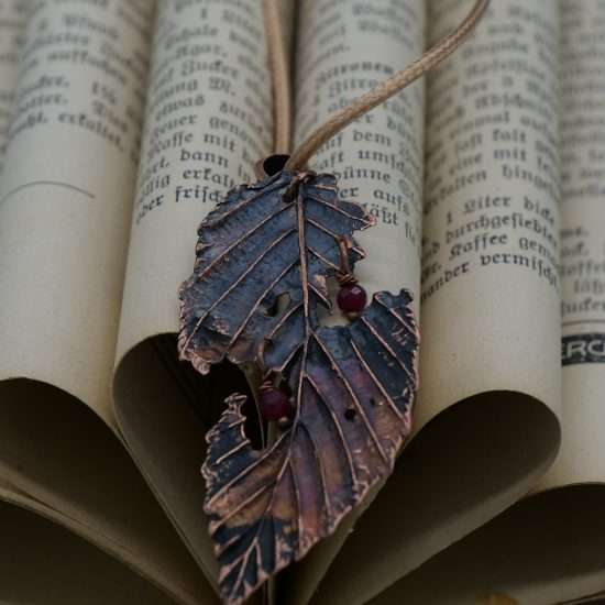 Statt Makel wird das Unvollkommene zum Blickfang – ein wunderbares Spiel aus Natur! Die feine Kupferschicht bewahrt das echte fragile Buchenblatt dauerhaft und verleiht ihm eine warme, metallische Ausstrahlung. Die natürlichen Zwischenräume und Maserungen erzählen von Wind, Insekten, Regen – und machen das Stück zu einem echten Unikat. Die eingesetzten Granate sorgen für eine ruhige Tiefe, die harmonisch mit dem Naturmaterial verschmilzt. Getragen wird der Anhänger an einer passenden Baumwollkette. Ein Schmuckstück für alle, die in der Natur nicht nur Schönheit, sondern auch Charakter suchen. Abmessungen: ca. 4,5 x 5 cm Gewicht: ca. 5 g Kette: Baumwollband (gewachst) ca. 45 cm- Edelstein: Granatstein 🍂 organisches Ausgangsmaterial – jedes Stück ein Unikat 🌱 nachhaltig – u.a. Altkupfer als Rohstoff 💚 handgefertigt in Deutschland59,00 € -