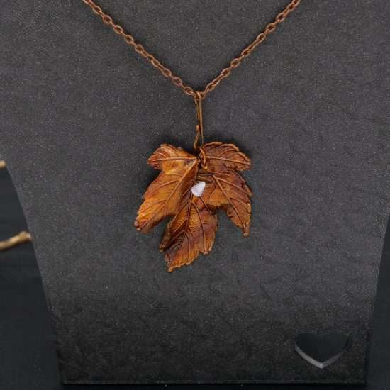 Ein echtes Ahornblatt, in seiner natürlichen Form erhalten und behutsam mit einer feinen Kupferschicht überzogen: schlicht, ausdrucksstark und absolut einzigartig wie jedes Blatt in der Natur! Die warme Kupferfarbe verleiht dem Blatt eine edle, leicht glänzende Oberfläche, die sich angenehm tragen lässt – als Schmuckstück mit Geschichte. Getragen wird das verkupferte Blatt an einer passenden Metallkette in Kupfer. Ein kleiner Mondstein setzt einen dezenten Akzent und rundet das Design elegant ab. Beidseitig tragbar. Für alle, die das Wechselspiel von Natur und Seele spüren – und die Schönheit des Unvollkommenen schätzen. Details: • Anhänger: ca. 5 × 4 cm • Gewicht: ca. 6 g • Kette: Metallkette in Kupfer, ca. 45 cm 🍂 organisches Ausgangsmaterial – jedes Stück ein Unikat 🌱 nachhaltig – u.a. Altkupfer als Rohstoff 💚 handgefertigt in Deutschland49,00 € -