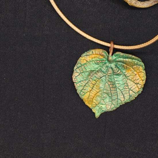 Ein farbenfrohes Feigenblatt mit einem besonderen Kupferdekorakzent! Ein echtes Blatt, unverwechselbar aufgrund seiner besonderen Form und ausgeprägten Adern, die einfach zum Verlieben sind und seine Einzigartigkeit betonen! Getragen wird der Anhänger an einem passenden Baumwollband (ca. 45 cm), das das Gesamtbild abrundet. Für alle, die das Wechselspiel von Natur und Seele spüren – und die Schönheit des Unvollkommenen schätzen. Details: • Anhänger: ca. 5 × 4 cm • Gewicht: ca. 6 g • Kette: ca. 45 cm, Baumwollband (gewachst) 🍂 organisches Ausgangsmaterial – jedes Stück ein Unikat 🌱 nachhaltig – u.a. Altkupfer als Rohstoff 💚 handgefertigt in Deutschland49,00 € -