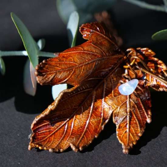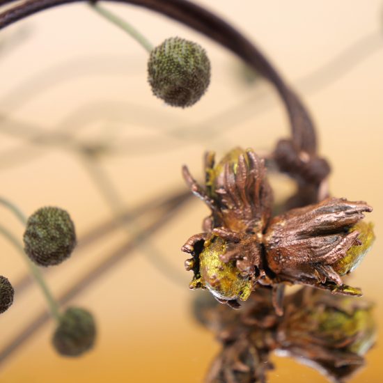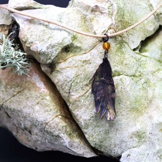 Mit einer speziellen Technik verwandle ich natürliche Objekte wie z.B. Blätter, Blüten, Federn und vieles mehr in detailreiche Kunstwerke. Durch einen aufwendigen genauso wie faszinierenden elektrischen Prozess wird Kupfer filigran auf das Naturobjekt übertragen – so entstehen wunderschöne Unikate, die die Schönheit der Natur im Metall widerspiegeln.