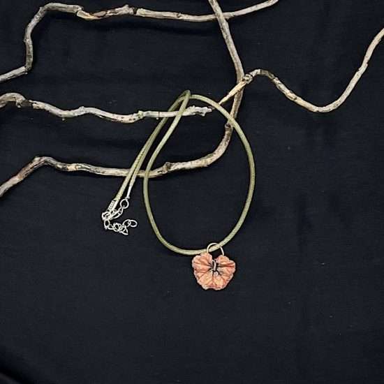Absolut märchenhaft elegant: ein mini Malvenblatt, behutsam eingebettet auf einem zarten Ästchen und absolut lebendig wirkend! In dezenten Farben gehalten strahlt das zarte Collier etwas Edles und gleichzeitig Verspieltes! Getragen wird der Anhänger an einem Collierband mit einem praktischen Drehverschluss. Für alle, die das Wechselspiel von Natur und Seele spüren – und die Schönheit des Unvollkommenen schätzen. Details: • Anhänger: ca. 9,5 × 4 cm • Gewicht: ca. 8 g • Kette: Collierband mit einem Drehverschluss 🍂 organisches Ausgangsmaterial – jedes Stück ein Unikat 🌱 nachhaltig – u.a. Altkupfer als Rohstoff 💚 handgefertigt in Deutschland68,00 € -
