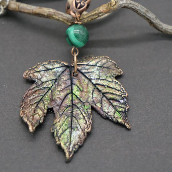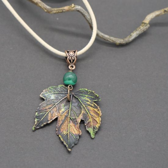 In allen Details erhaltenes filigranes Ahornblatt mit einer passenden Malachitperle. Die Jahreszeiten kommen und gehen, aber das verkupferte Ahornblatt bleibt erhalten und schenkt Dir Freude jeden Tag! Ob Vor- oder Rückseite: beides ist einzigartig wunderschön! Getragen wird der Anhänger an einem passenden Baumwollband (ca. 45 cm), das das Gesamtbild abrundet. Für alle, die das Wechselspiel von Natur und Seele spüren – und die Schönheit des Unvollkommenen schätzen. Details: • Anhänger: ca. 4,5 × 5 cm • Gewicht: ca. 4 g • Kette: ca. 45 cm, Baumwollband (gewachst) • Edelstein: Malachitkugel 🍂 organisches Ausgangsmaterial – jedes Stück ein Unikat 🌱 nachhaltig – u.a. Altkupfer als Rohstoff 💚 handgefertigt in Deutschland59,00 € -