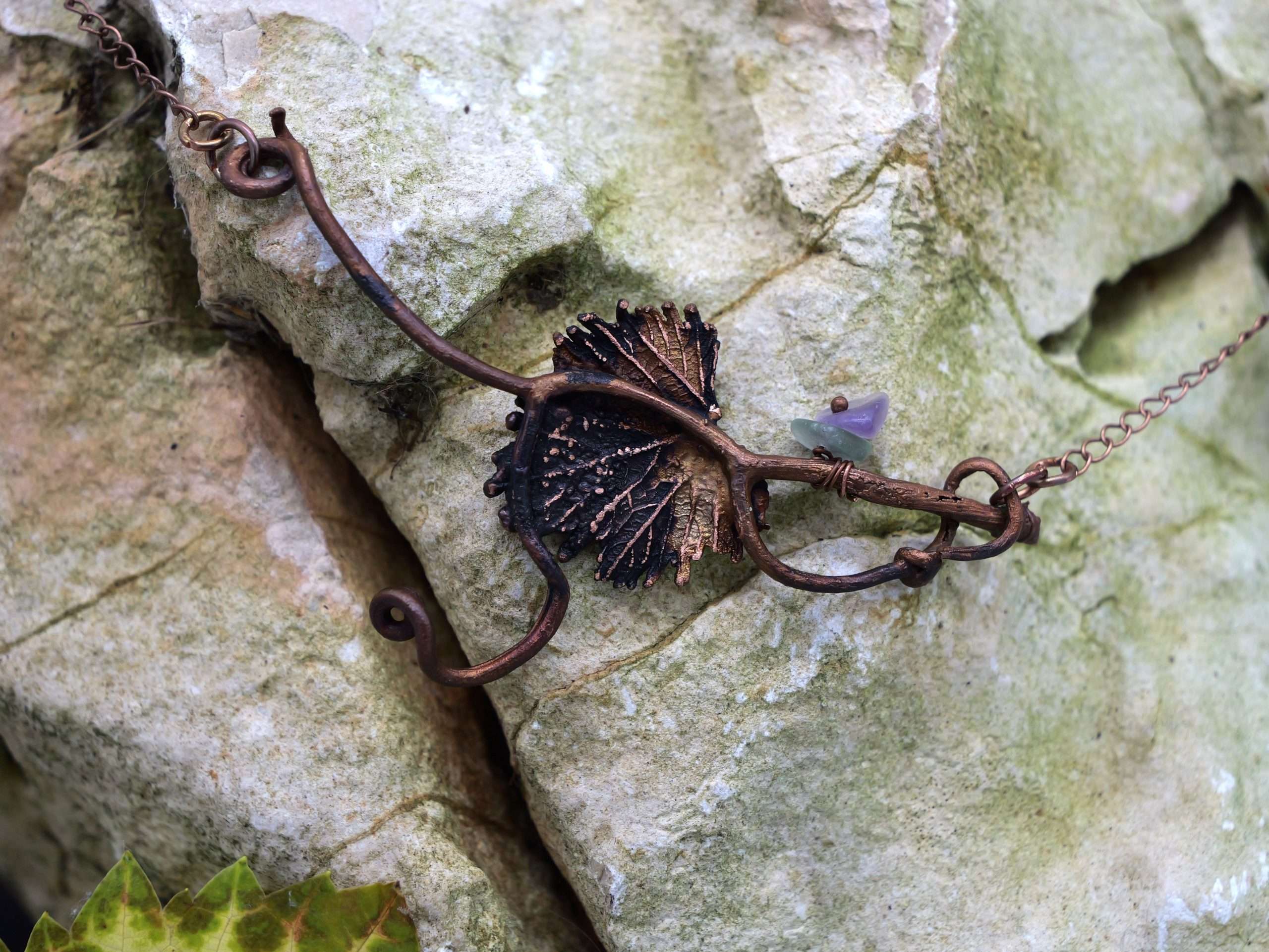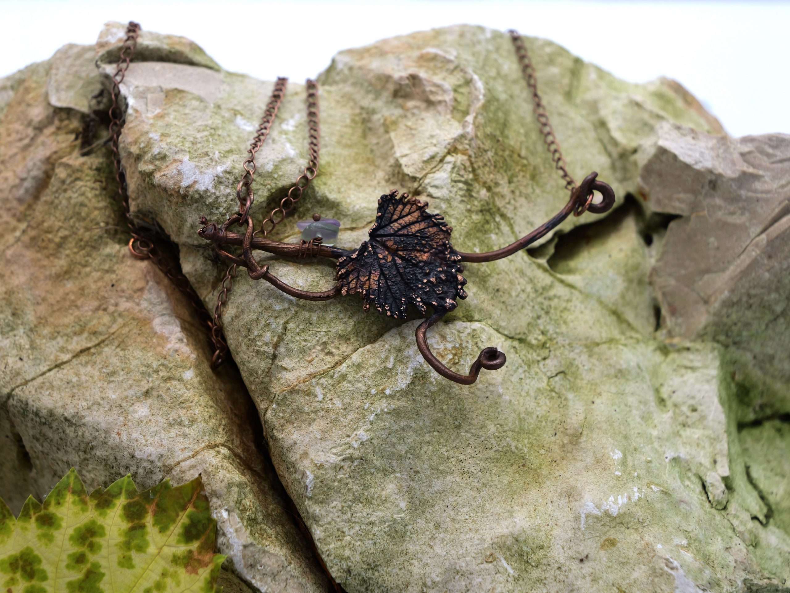 ein Weinblatt auf einer echten Weinranke, verkupfert und mit feinen Farbakzenten von Hand veredelt. Die charakteristische Form – wild, lebendig und einzigartig – bleibt in all ihren natürlichen Details erhalten.