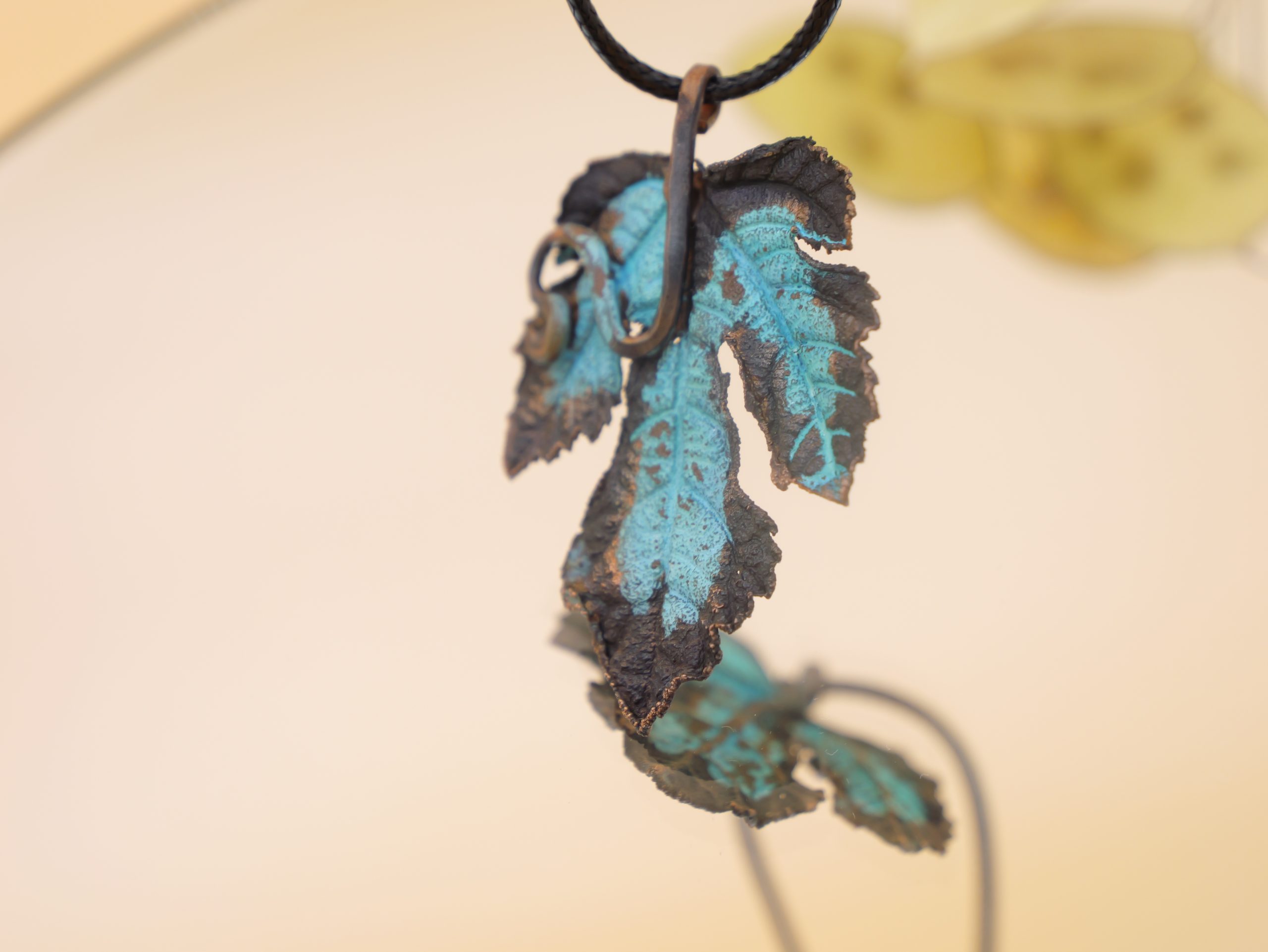Getragen wird der Anhänger an einem passenden Baumwollband (ca. 45 cm), das das Gesamtbild abrundet.