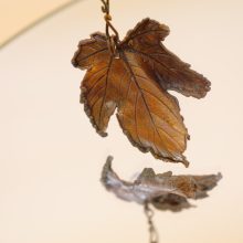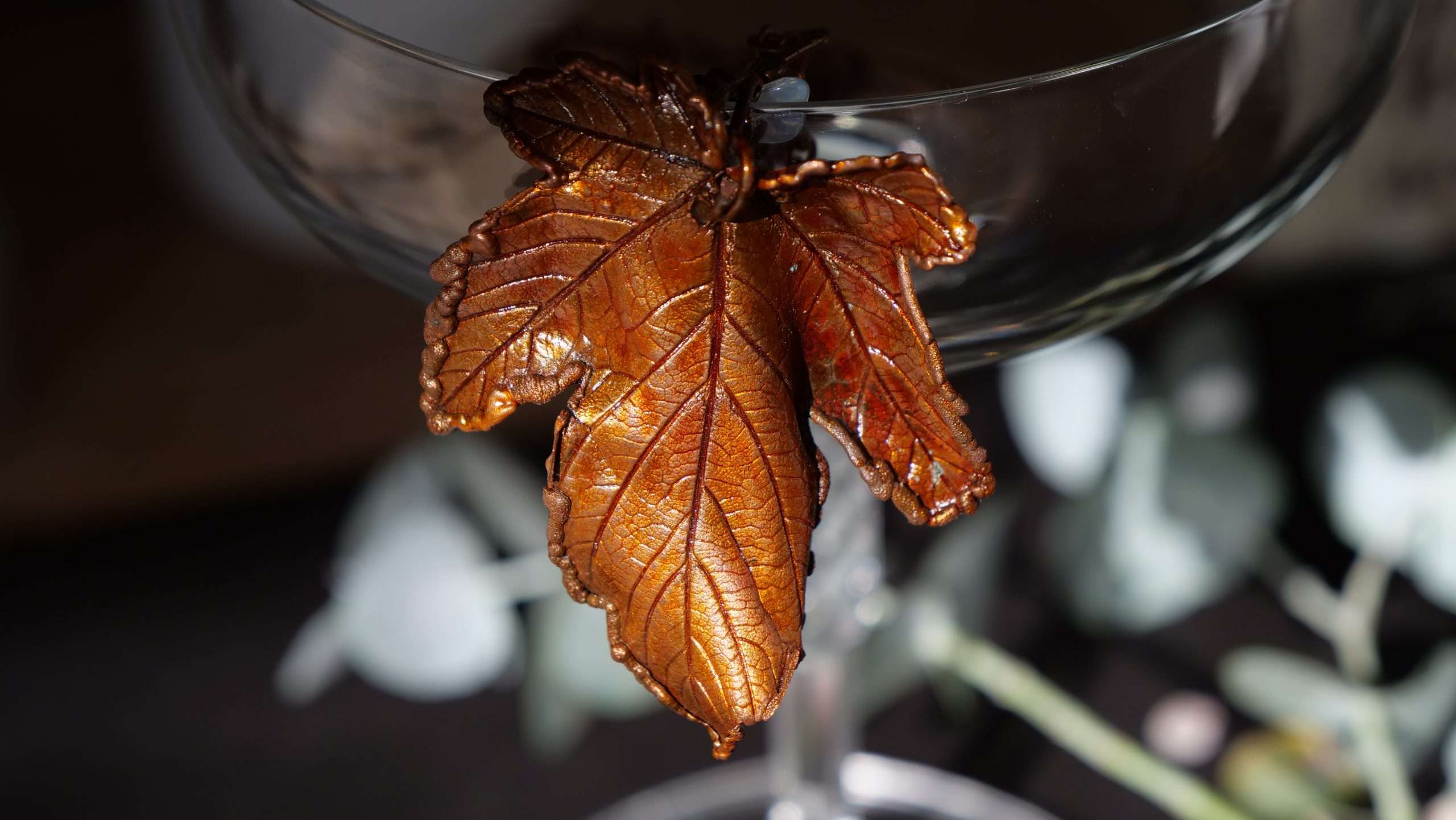 Ein echtes Ahornblatt, in seiner natürlichen Form erhalten und behutsam mit einer feinen Kupferschicht überzogen: schlicht, ausdrucksstark und absolut einzigartig wie jedes Blatt in der Natur!