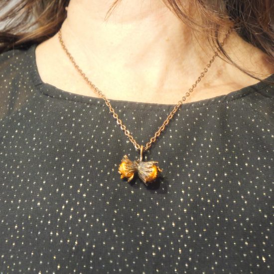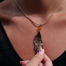 Getragen wird der Anhänger an einem passenden Baumwollband, das das Gesamtbild abrundet.